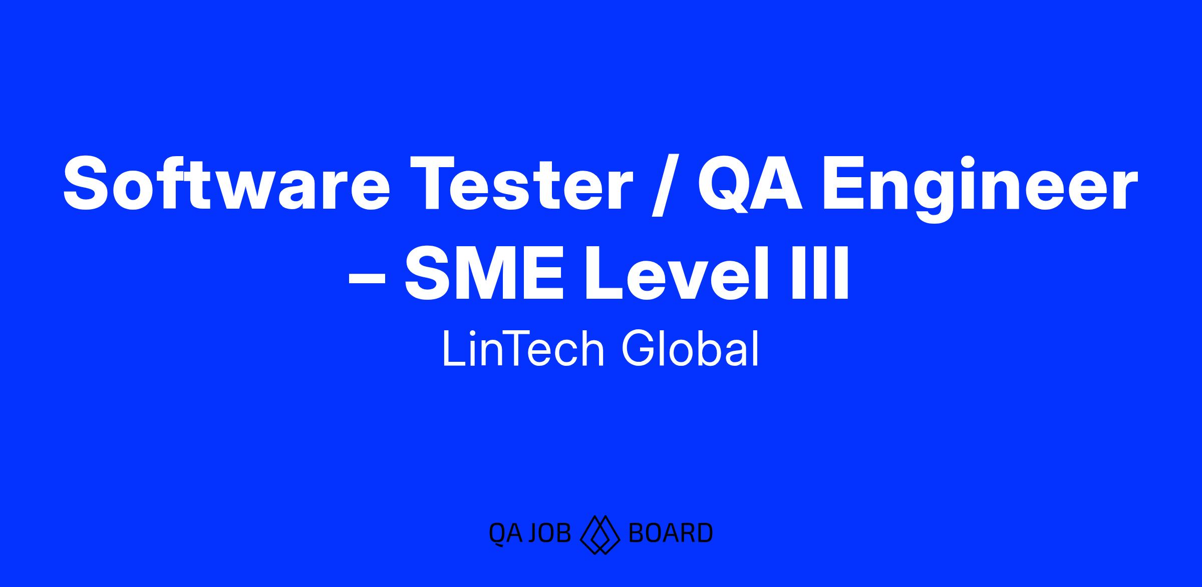 Software Tester / QA Engineer - SME Level III