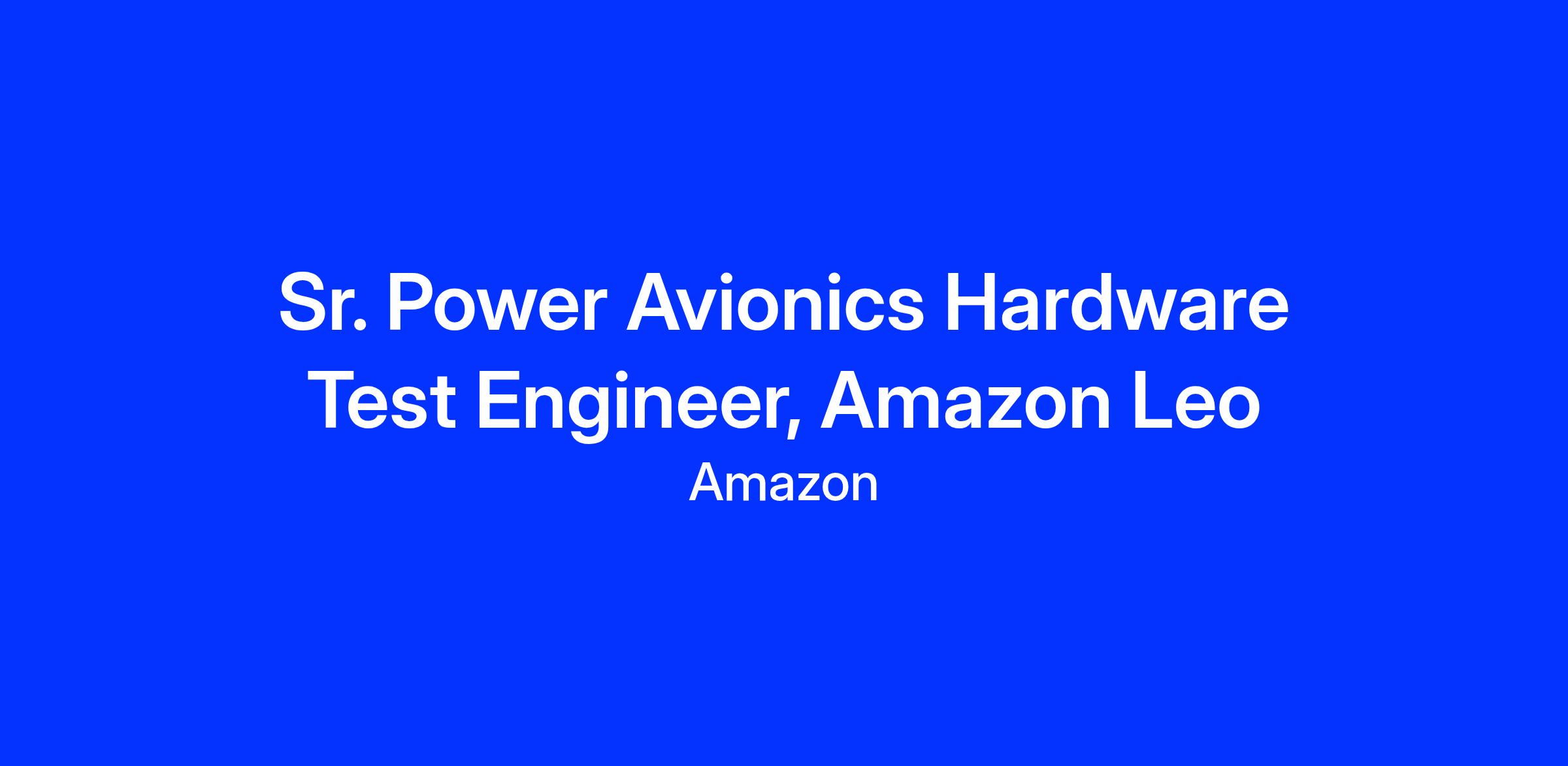 Our team is responsible for designing and delivering power avionics subsystems such as propulsion control, solar array deployment and control, and magnetorquer bars. We take ownership and work hard to deliver the highest quality solutions to support the long-term success of Amazon Leo. This team consists of a broad set of technical backgrounds, and we look forward to welcoming people that are excited to help us deliver broadband internet to underserved communities!