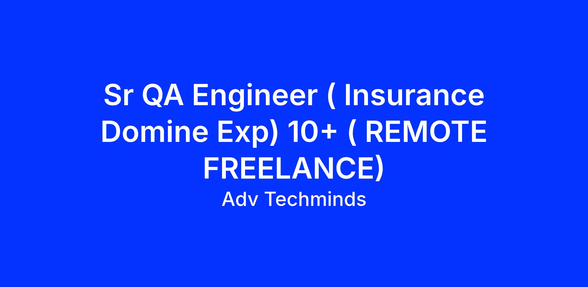 We are currently looking for a Sr QA Engineer with 10+ years of experience in QA withΒ insurance domain to join our team on a freelance basis. The ideal candidate will have a strong background in software testing and quality assurance, with a deep understanding of the insurance industry and its processes.