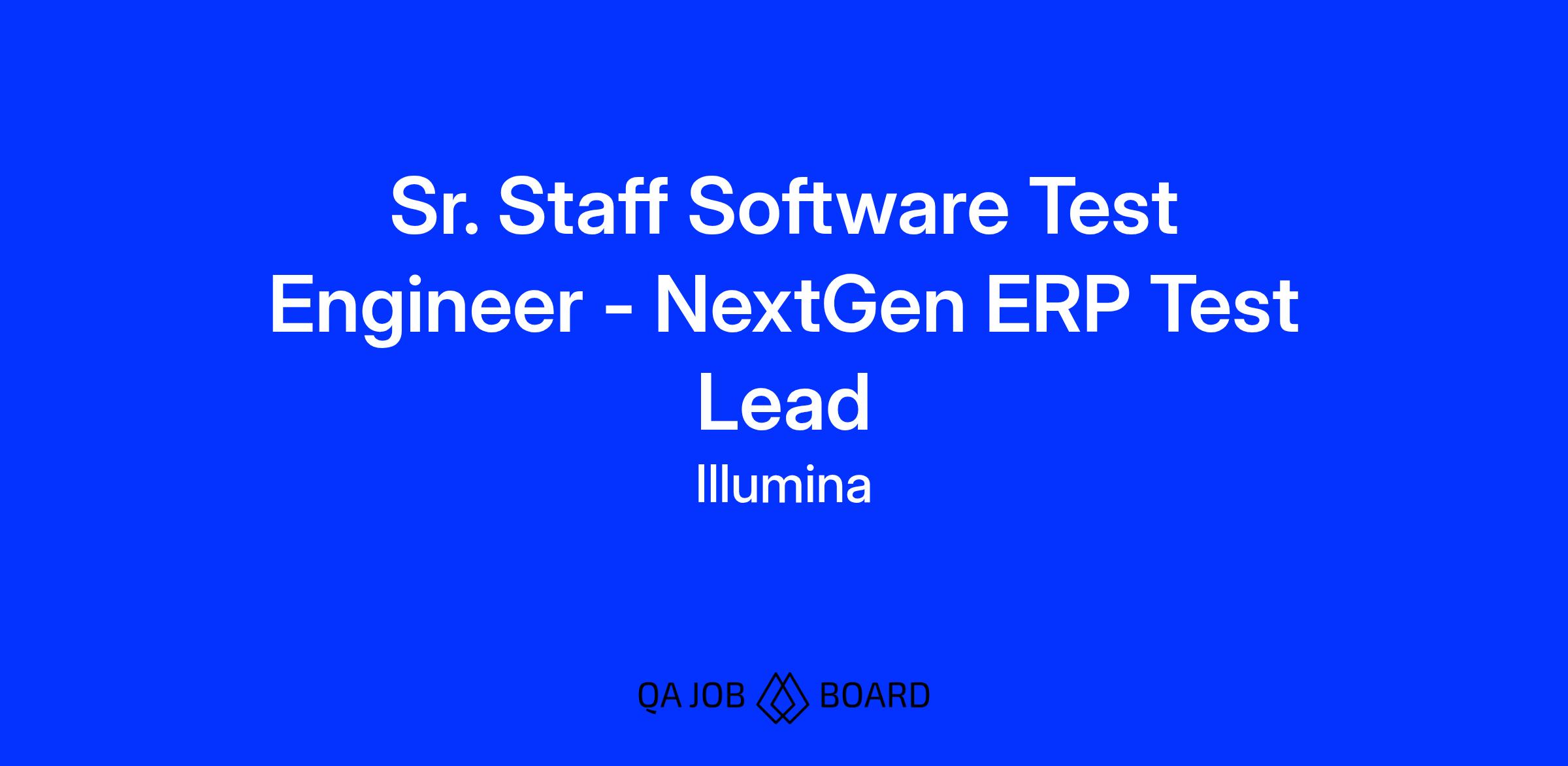 The estimated base salary range for the Sr. Staff Software Test Engineer - NextGen ERP Test Lead role based in the United States of America is: $105,600 - $158,400. Should the level or location of the role change during the hiring process, the applicable base pay range may be updated accordingly. Compensation decisions are dependent on several factors including, but not limited to, an individual’s qualifications, location where the role is to be performed, internal equity, and alignment with market data. Additionally, all employees are eligible for one of our variable cash programs (bonus or commission) and eligible roles may receive equity as part of the compensation package. We offer a wide range of benefits as innovative as our work, including access to genomics sequencing, family planning, health/dental/vision, retirement benefits, and paid time off.