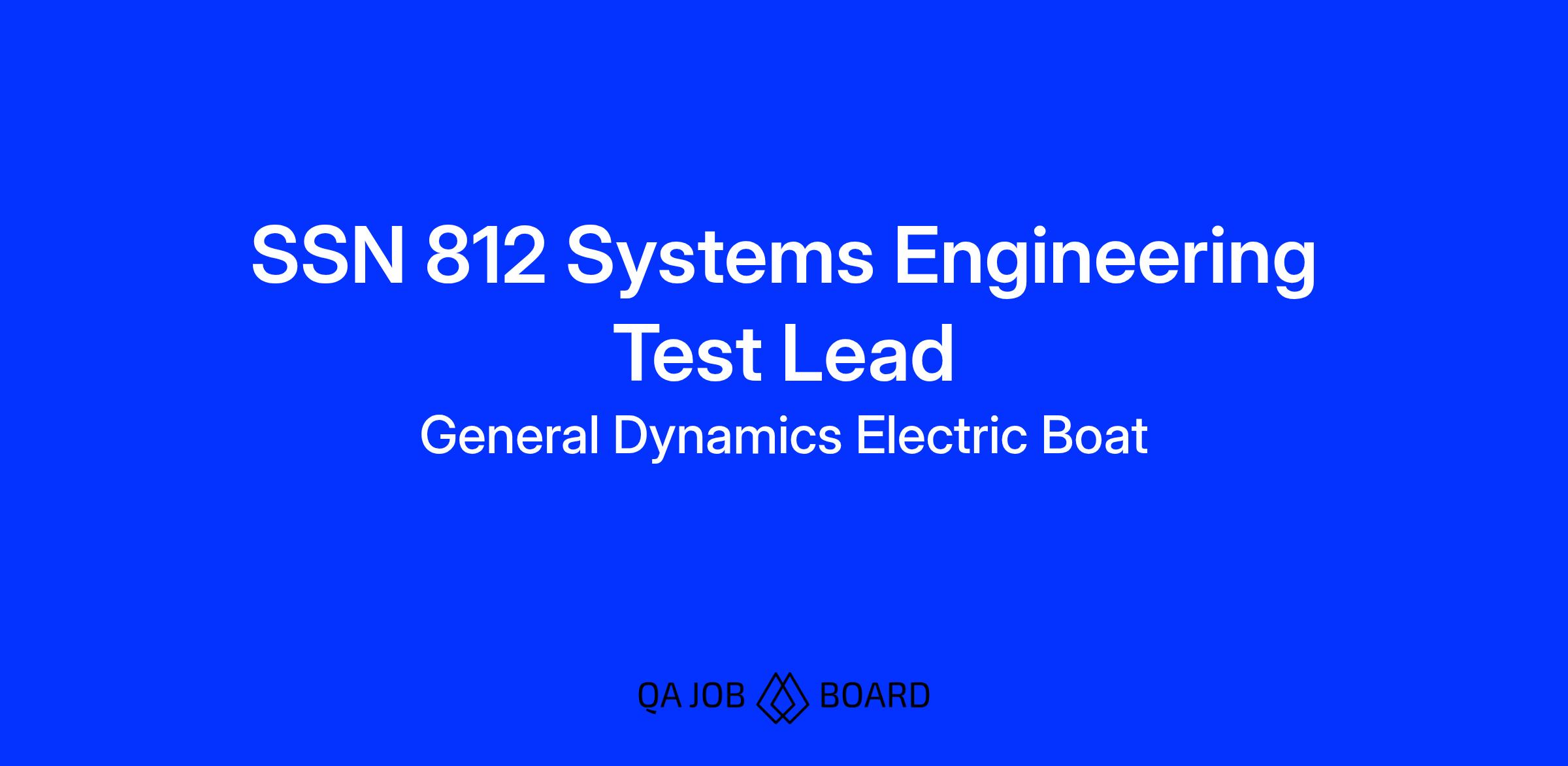 Platform System Engineering (D417) is seeking a highly motivated individual to serve as the SSN 812 Systems Engineering Test Lead.Β In conjunction with the SSN 812 LSE and other members of the D417 test team, the individual would lead and support multiple engineering disciplines in planning, managing, executing, and resolving challenges for the SSN 812 test program, including the following: