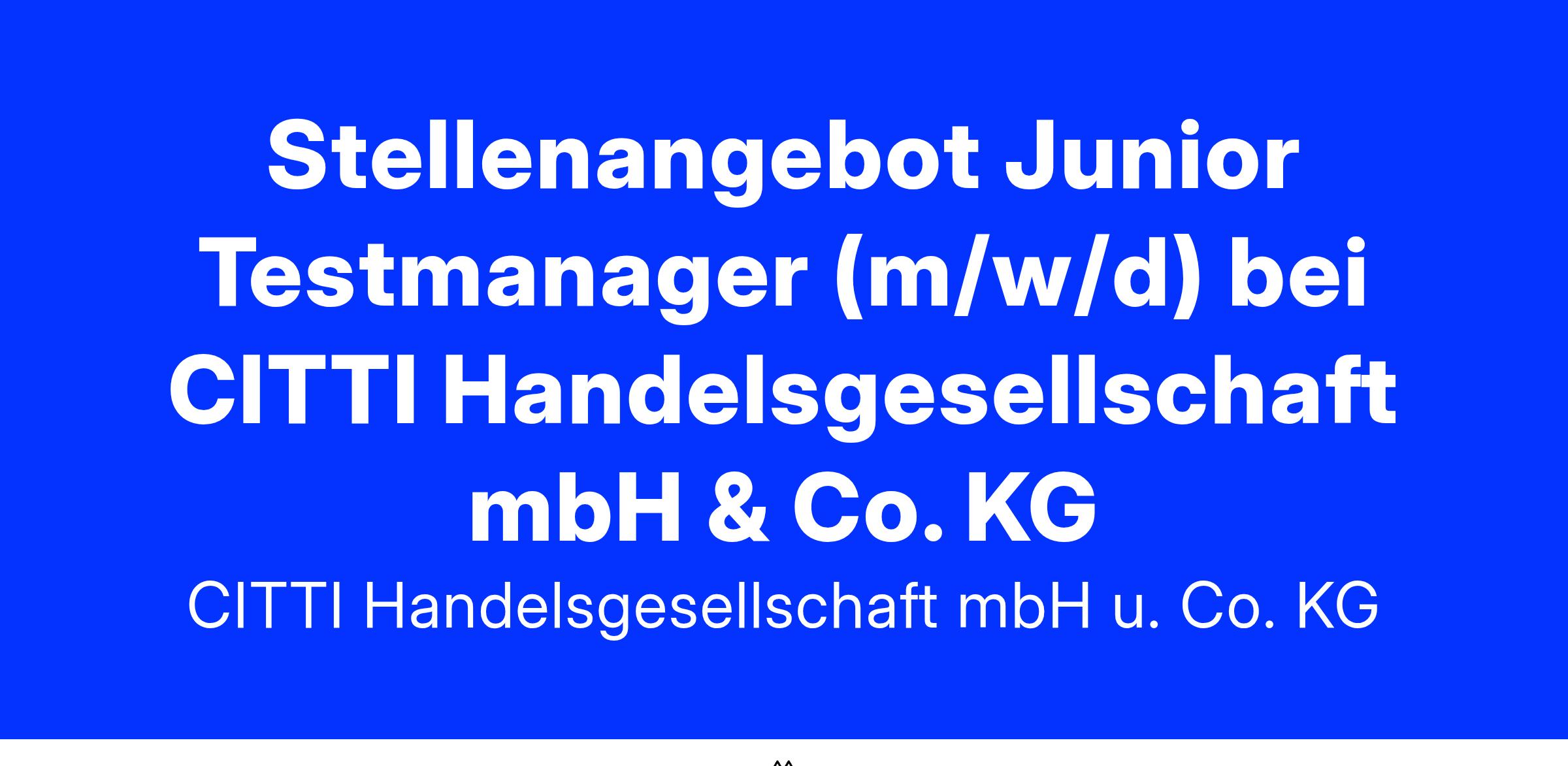 Stellenangebot Junior Testmanager (m/w/d) bei CITTI Handelsgesellschaft mbH & Co. KG