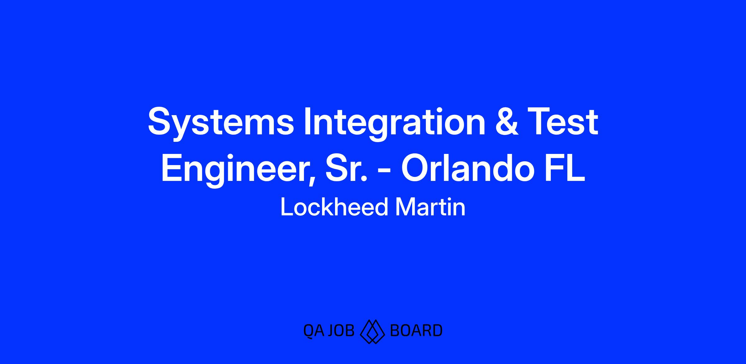 You will be the System Integration, Test, and Evaluation (IT&E) Engineer to support a program's system integration and system qualification initiatives in Orlando, FL. Our team is responsible for executing sub-system and system level integration and tests for new and existing products.