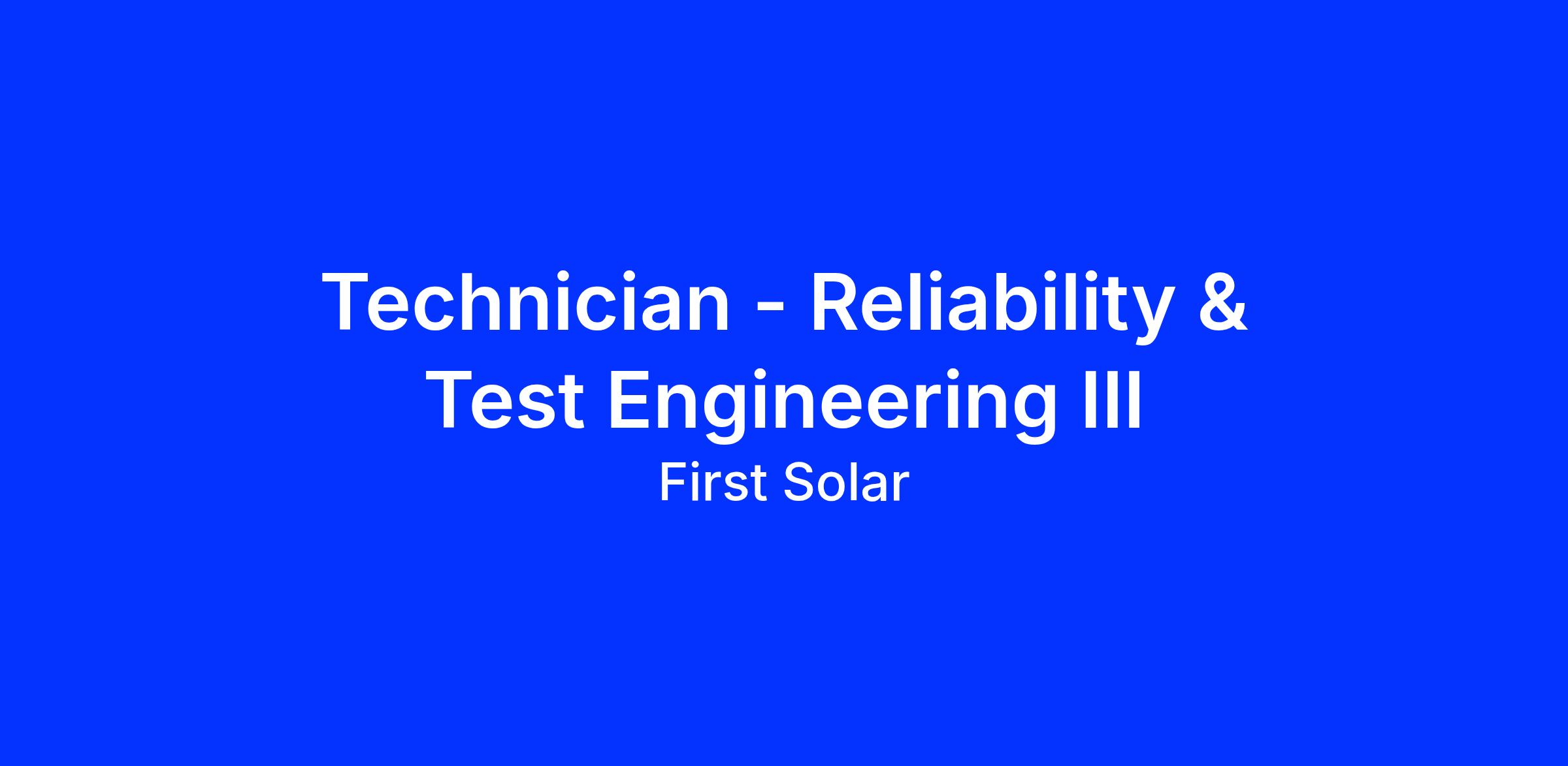 - AS degree in engineering, physics, chemistry, electronics or materials science with 10+ years of experience in a similar role OR 5Β years Β in a RET II position at First Solar OR