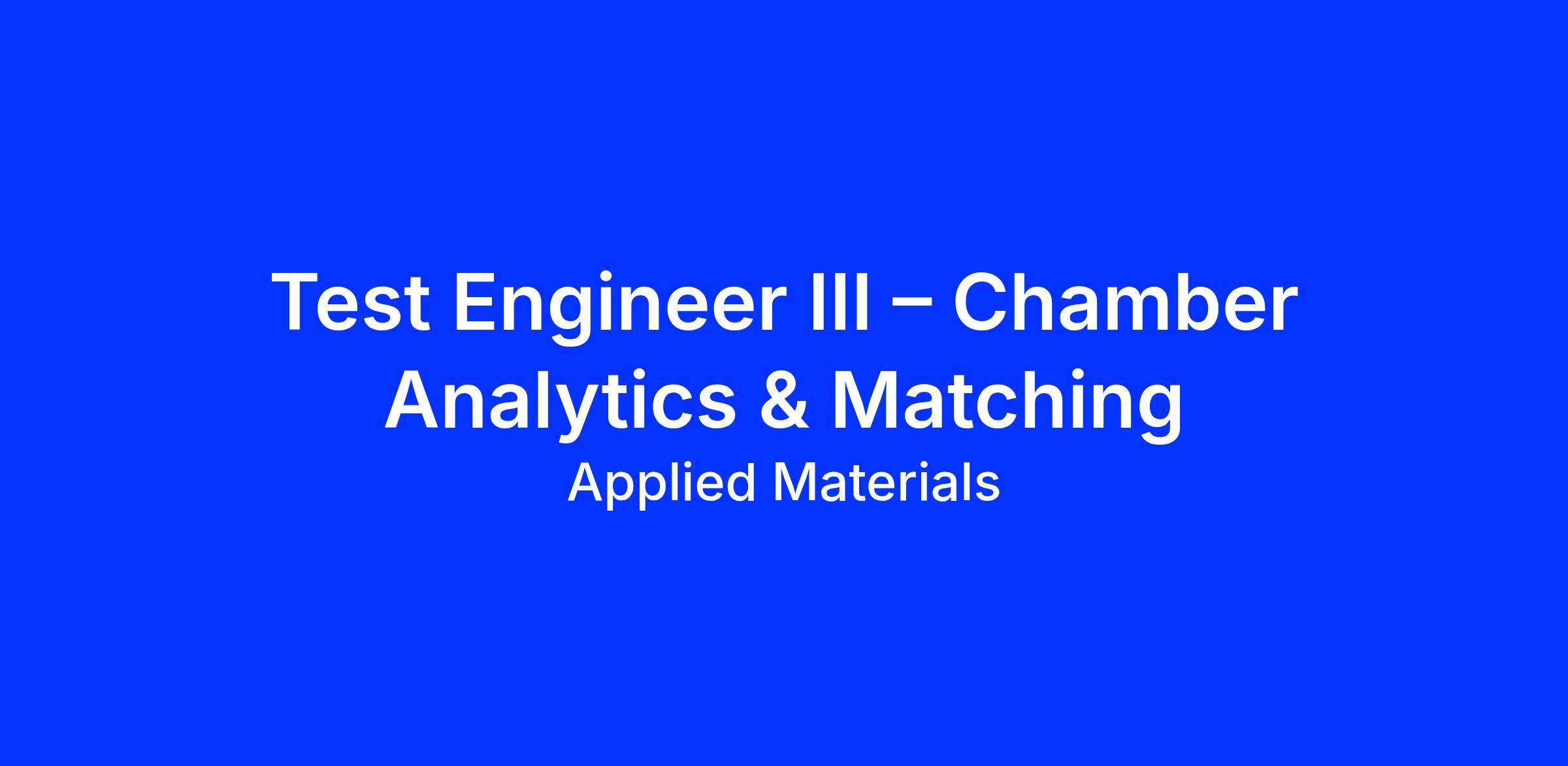 The Test Engineer for Chamber Analytics & Matching will be responsible for developing, deploying, and sustaining advanced chamber trace analytics capabilities to improve manufacturing cycle time and quality, chamber matching, data analytics for troubleshooting customer production performance issues. This role sits at the intersection of Manufacturing Engineering, System Engineering, Design Engineering, and Global Product Support.