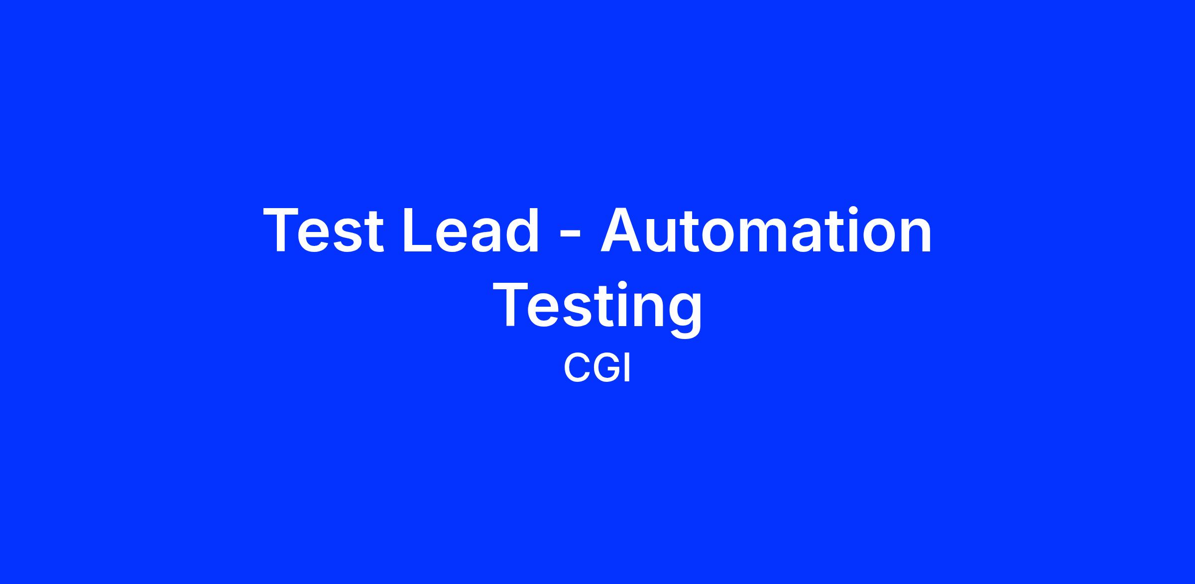 Job Title: Test Lead