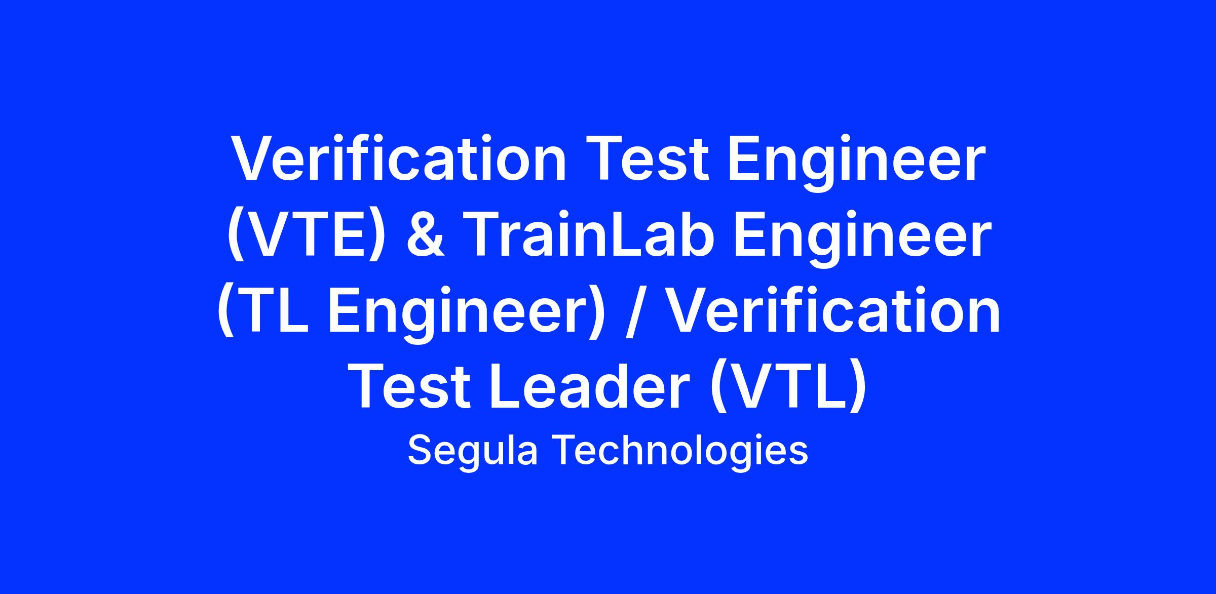 Verification Test Engineer (VTE) & TrainLab Engineer (TL Engineer) / Verification Test Leader (VTL)