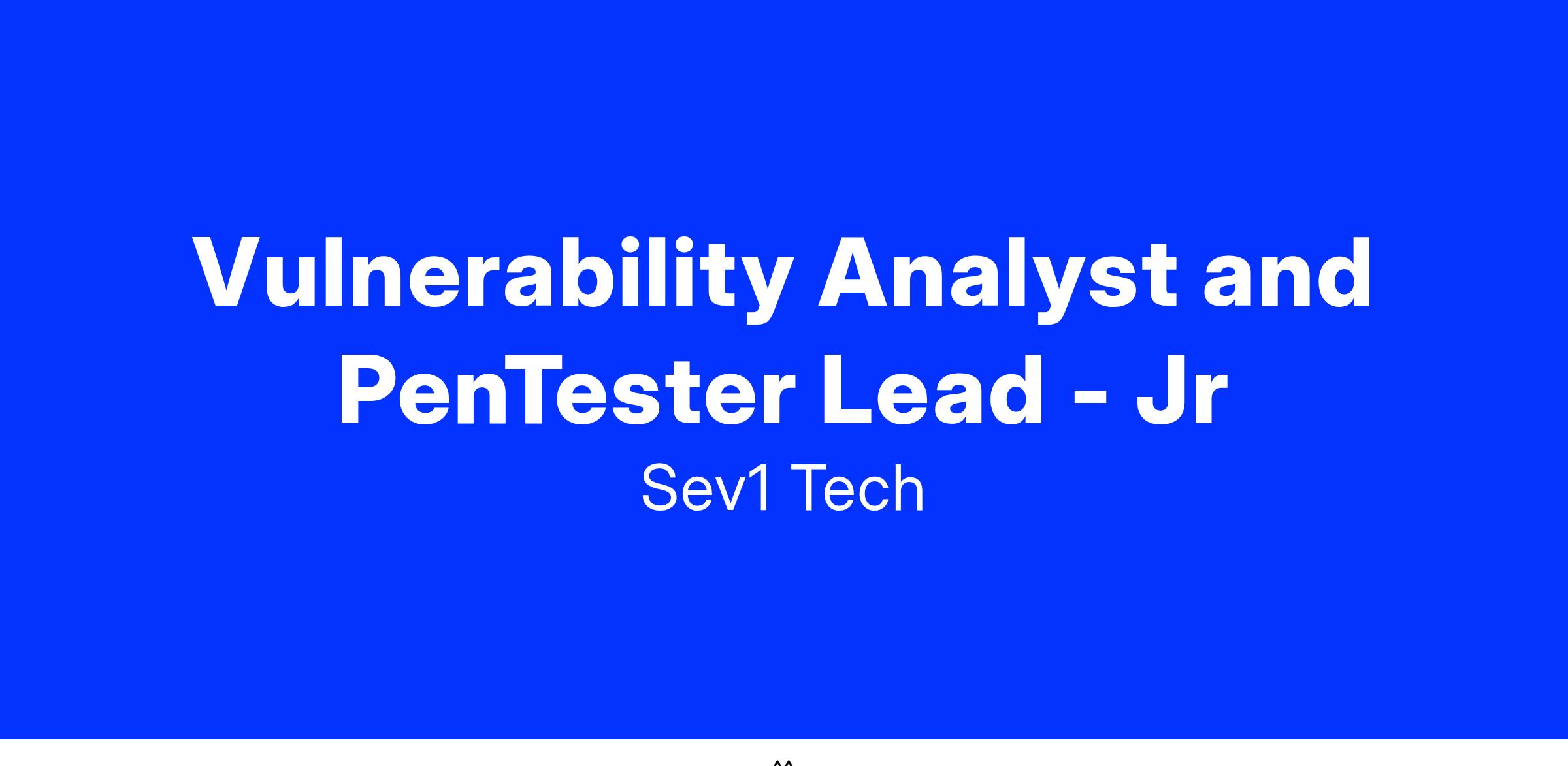 Vulnerability Analyst and PenTester Lead - Jr